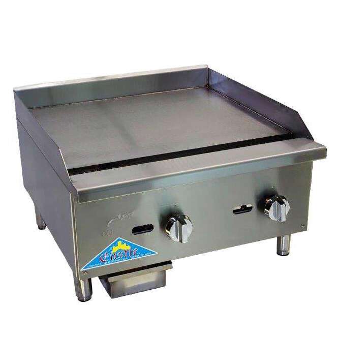 Upgrade your kitchen capabilities with the Comstock-Castle CCEGT24 Gas Countertop Griddle. Designed for commercial restaurant use, this griddle is a game-changer in the kitchen. With a 24" x 27" frame and a 24" x 19.4" x 5/8" thick smooth highly polished steel griddle plate, it provides ample space for cooking a variety of dishes. The welded seams ensure durability and longevity, while the two thermostat controls allow for precise temperature adjustments. The 3" splash guard on the back and ends keeps your workspace clean, and the 3" wide front grease trough and removable grease drawer make cleaning a breeze. Made with a stainless steel front and galvanized sides, this griddle is built to withstand the demands of a busy commercial kitchen. With 60,000 BTU of power, it delivers exceptional cooking performance. Upgrade your kitchen with the Comstock-Castle CCEGT24 Gas Countertop Griddle and experience the difference it makes in your restaurant's efficiency and productivity.