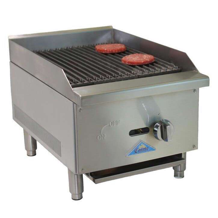 Set the culinary standard with top-tier equipment. The Comstock-Castle CCERB16 Charbroiler is a must-have for any commercial restaurant. This countertop gas charbroiler is designed to deliver exceptional performance and durability. With a 16" wide x 27" deep frame and a 16" x 18" deep cook surface, it provides ample space for grilling a variety of meats and vegetables. The cast iron grates ensure even heat distribution and create beautiful grill marks on your food. The 10 ga. stainless steel radiants and stainless steel splash guard help to minimize flare-ups and make cleaning a breeze. The stainless steel front and galvanized sides add a sleek and professional look to your kitchen. Equipped with a manual control and 30,000 BTU, this charbroiler offers precise temperature control and powerful heat output. ETL and ETL-Sanitation certified, this Comstock-Castle charbroiler guarantees safety and reliability. Upgrade your restaurant's grilling capabilities with the Comstock-Castle CCERB16 Charbroiler.