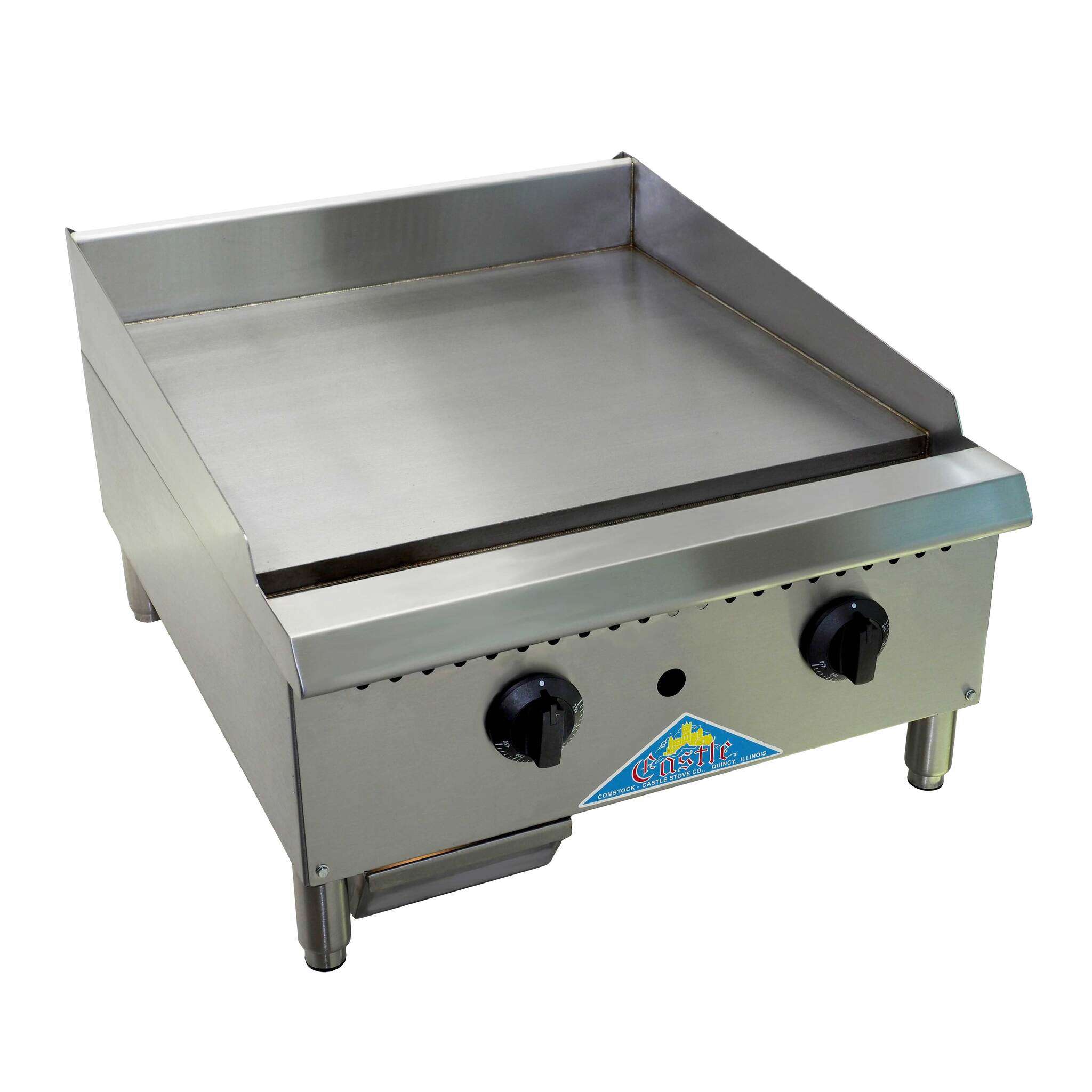 Create culinary wonders with precision equipment. The Comstock-Castle CCHG-12T Gas Countertop Griddle is a must-have for any commercial restaurant. With its 12" wide x 30" deep frame, this griddle provides ample cooking space to handle high-volume orders. The smooth, highly polished steel griddle plate ensures even heat distribution and easy cleaning. Equipped with a thermostat control, you can easily adjust the temperature to achieve perfect results every time. The 4" splash guard on the back and ends keeps your kitchen clean and safe, while the 3" wide front grease trough and removable grease drawer make maintenance a breeze. Made with a stainless steel exterior and 4" stainless steel legs, this griddle is built to withstand the demands of a busy kitchen. With 30,000 BTU of power, this NSF and ETL-Sanitation certified griddle delivers exceptional performance. Elevate your culinary creations with the Comstock-Castle CCHG-12T Gas Countertop Griddle.