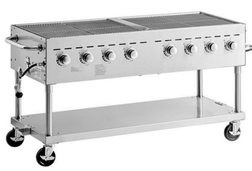 Elevate your outdoor cooking experience with our premium gas charbroiler grill, designed for both seasoned grill masters and backyard enthusiasts. This robust outdoor grill boasts a 61-inch wide stainless steel frame, plus an additional 4-inch handle for effortless maneuvering, achieving the perfect blend of style and functionality. With a depth of 25 inches and standing tall at 35 inches, this grill not only fits seamlessly into your outdoor space but also offers an impressive cooking capacity. Equipped with eight high-performance burners and stainless steel radiants, it delivers a staggering 120,000 BTUs of grilling power, ensuring evenly distributed heat for perfectly charred results every time. The convenience of LP gas, paired with dual gas connections, hoses, and tank regulators, makes setup a breeze, allowing you to focus on crafting delicious meals. Built for mobility, it includes a set of four locking casters, granting you the freedom to position it where you please while ensuring stability during use. Certified by cETLus, this charbroiler grill stands as a testament to quality and safety, promising a reliable and thrilling grilling experience. Whether you're hosting a lively cookout or preparing a quiet family dinner, this outdoor grill is your trusted companion for unforgettable culinary adventures.