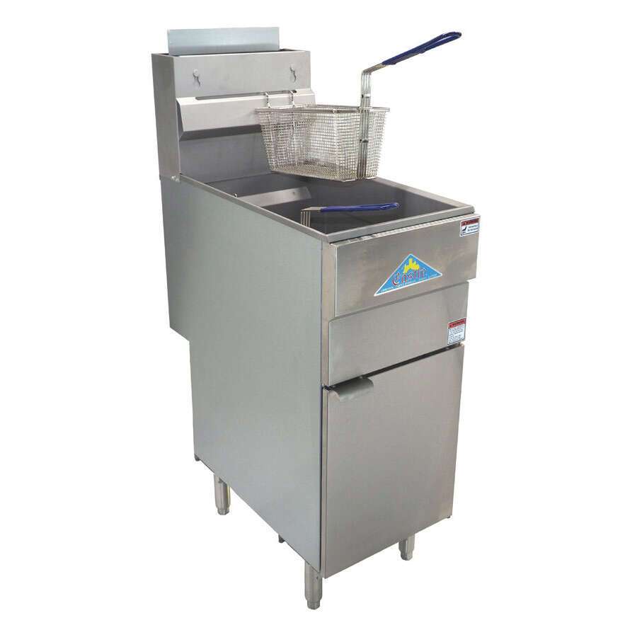 Upgrade your kitchen with cutting-edge cooking gear. The Comstock-Castle GF90-N Fryer is the perfect addition to any commercial restaurant. With its floor model design and full pot capacity, this gas fryer is built to handle the demands of a busy kitchen. The 15-1/2" wide fryer can hold up to 40 pounds of fat, allowing you to fry large quantities of food at once. The tube type and snap action thermostat ensure precise temperature control, while the standing pilot makes it easy to ignite the fryer quickly. The stainless steel fry tank and door are durable and easy to clean, while the galvanized sides add extra strength. The fryer also features 6" stainless steel legs for stability and a powerful 90000 BTU burner for fast and efficient cooking. Trust Comstock-Castle for high-quality, reliable fryers that will enhance your restaurant's cooking capabilities.