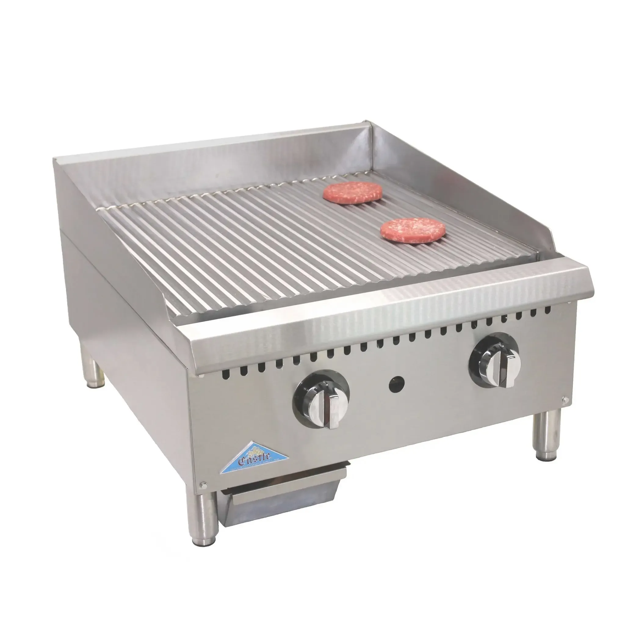 Transform your kitchen with top-of-the-line cooking solutions with the Comstock-Castle HG36T-1-FG Gas Countertop Griddle. Designed for commercial restaurant use, this griddle is a game-changer for any professional kitchen. With a 36" wide x 30" deep frame and a 36" x 22.5" x 1" thick fully grooved highly polished steel griddle plate, this griddle offers ample space for cooking a variety of dishes simultaneously. The three thermostat controls allow for precise temperature adjustments, ensuring consistent and even cooking results. The 4" splash guard on the back and ends, along with the 3" wide front grease trough and removable grease drawer, make cleaning a breeze. Made with a stainless steel exterior and equipped with 4" stainless steel legs, this griddle is not only durable but also easy to maintain. With a powerful 90000 BTU, this NSF and cETLus certified griddle delivers exceptional performance and efficiency. Upgrade your kitchen with the Comstock-Castle HG36T-1-FG Gas Countertop Griddle and experience the difference in quality and productivity.